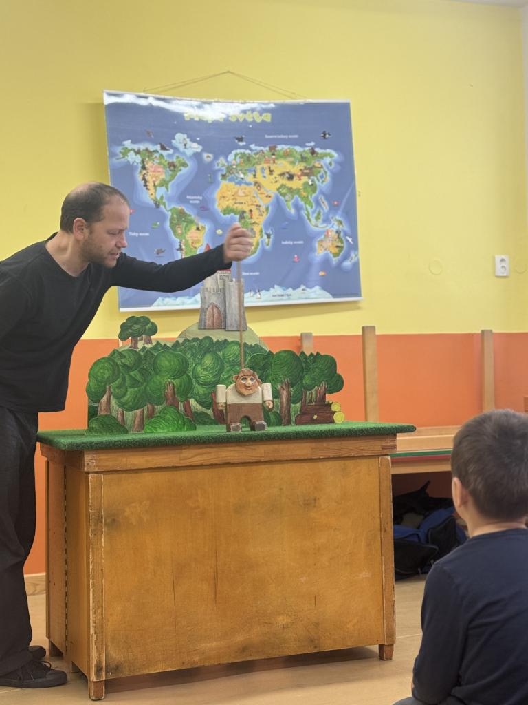 Divadlo s dřevěnými loutkami o kašpárkovi a Kubovi, kteří obelstili dva čerty.