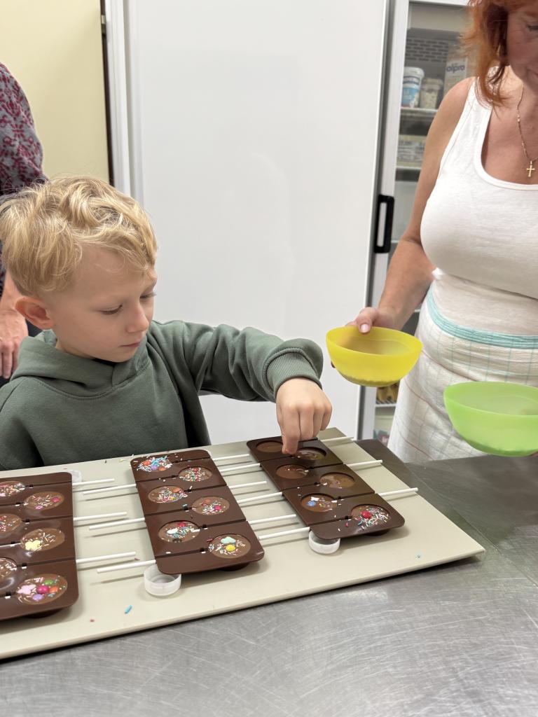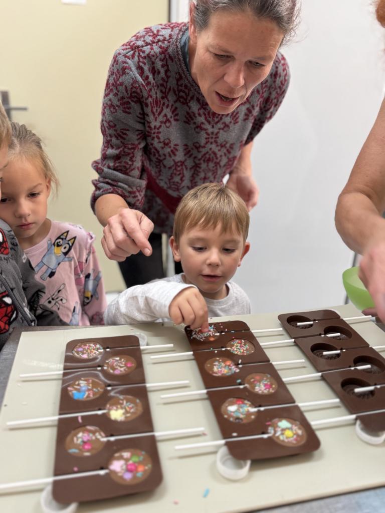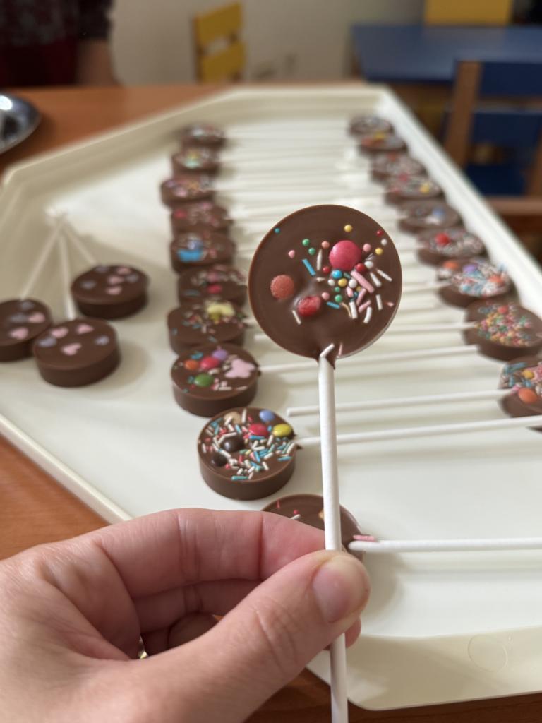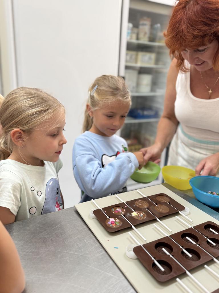 Děti se podívaly přímo do výrobny zákusků a dortů, samy si ozdobily čokoládové lízátko a viděli jsme, jak se vyrábí dort