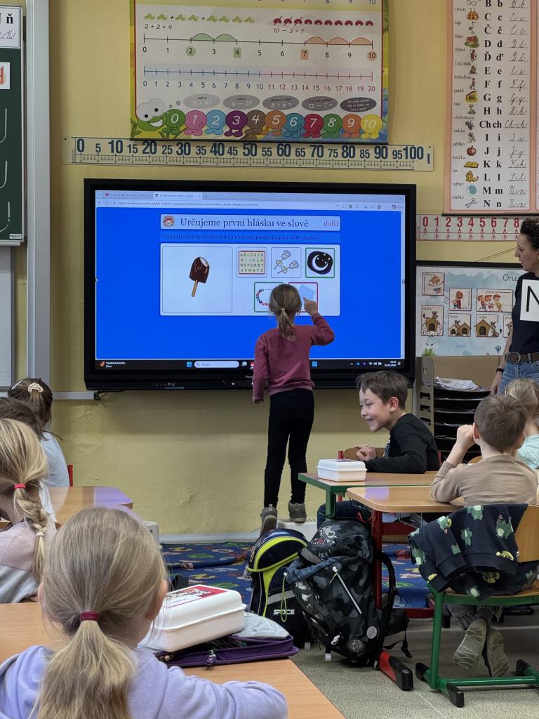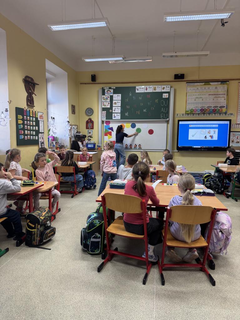 S předškolními dětmi jsme navštívili první třídu na ZŠ Masarykova, děti si tak na hodinu vyzkoušeli být prvňáčkem.