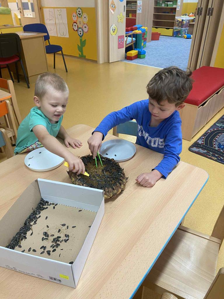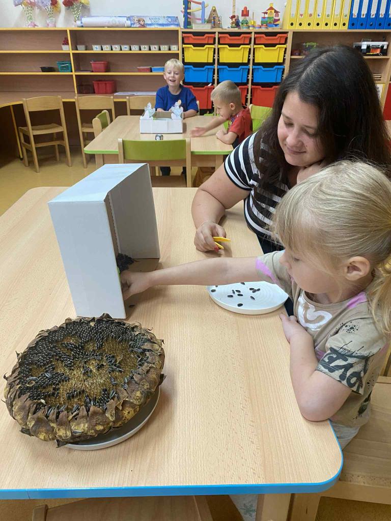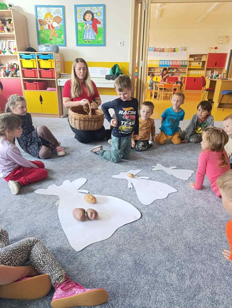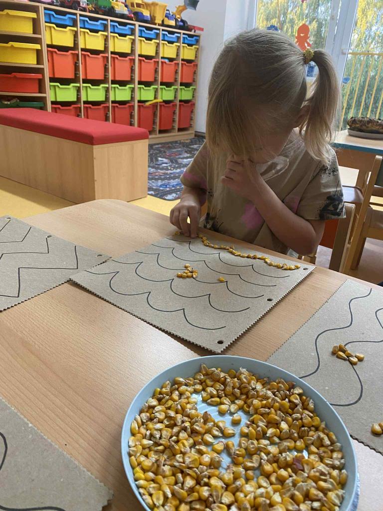 Kopu, kopu brambory, pouštím draka do výšky, Proběhnu si po poli a pak půjdu na šišky. Tahám řepu, hele ji, vůbec nechce ze země. Procházím se alejí, obléká se barevně.