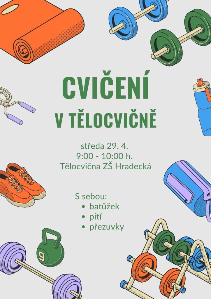 Půjdeme cvičit do tělocvičny ZŠ Hradecká. S sebou - batůžek, pití a přezuvky.
