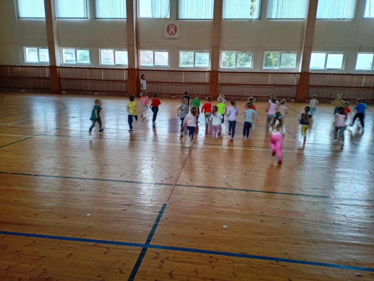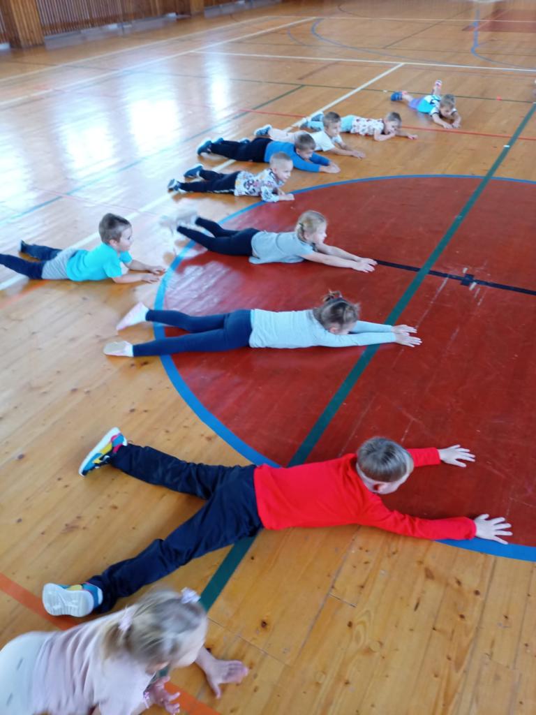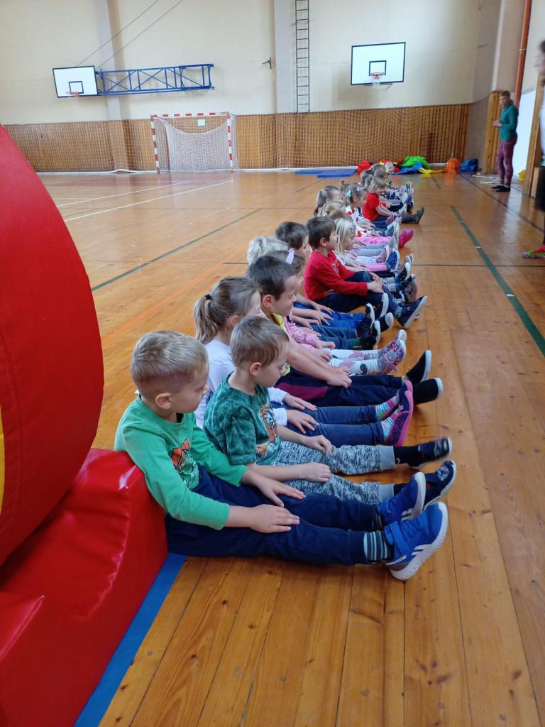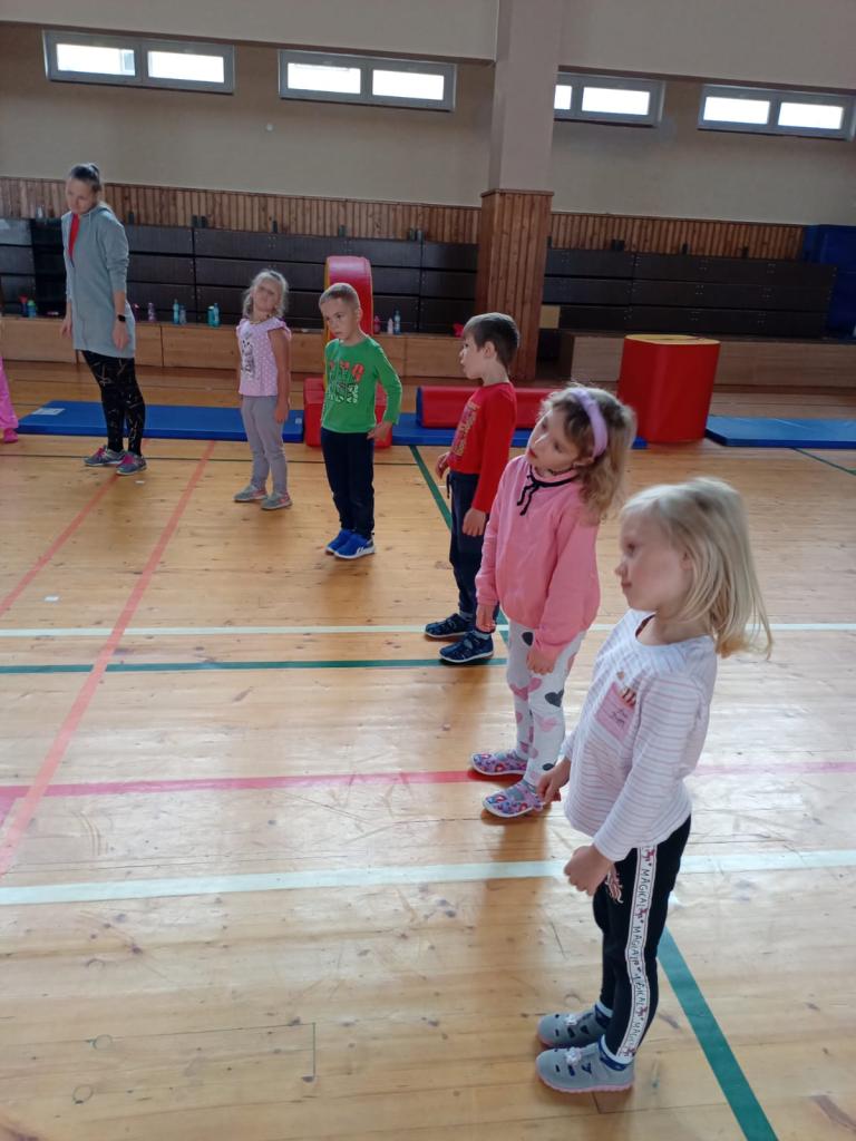 Naše první letošní cvičení v Sokolovně. Přidali se k nám také kamarádi ze Sluníček.