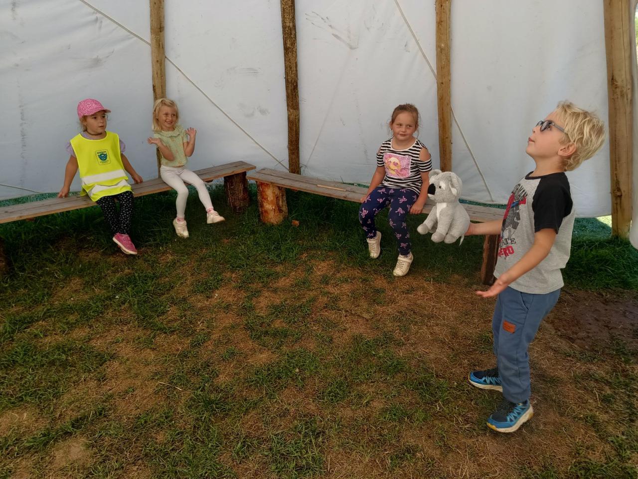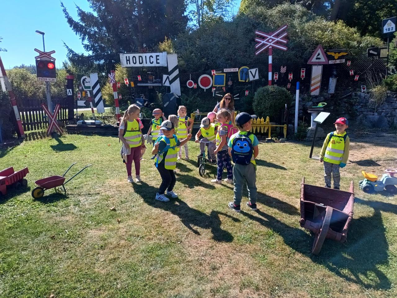 Vlakem jsme dojeli do Třeště a odtud s Eliškou, Edou a Timem jsme vyrazili pěšky po nové cyklostezce do Hodic. Tady jsme si báječně pohráli na hřišti a ještě jsme zastihli pana Holoubka. A potom hurá zpátky vlakem do Telče.